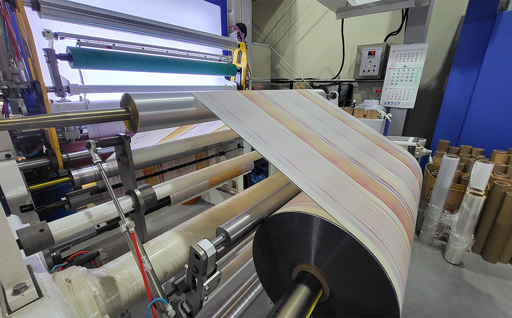 Designs are printed onto film using a gravure printer capable of precise color reproduction and high-resolution printing. Precise color separation and ink control ensure clear, consistent print quality.